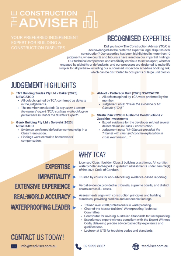 We are proud to share that our founder and principal building expert, Stan Giaouris, has been recognised as the preferred expert in multiple judgments. The courts have repeatedly relied on his testimony, evidence, and costings (quantum) as the benchmark for their findings, citing their validity, practicality, and thoroughness.